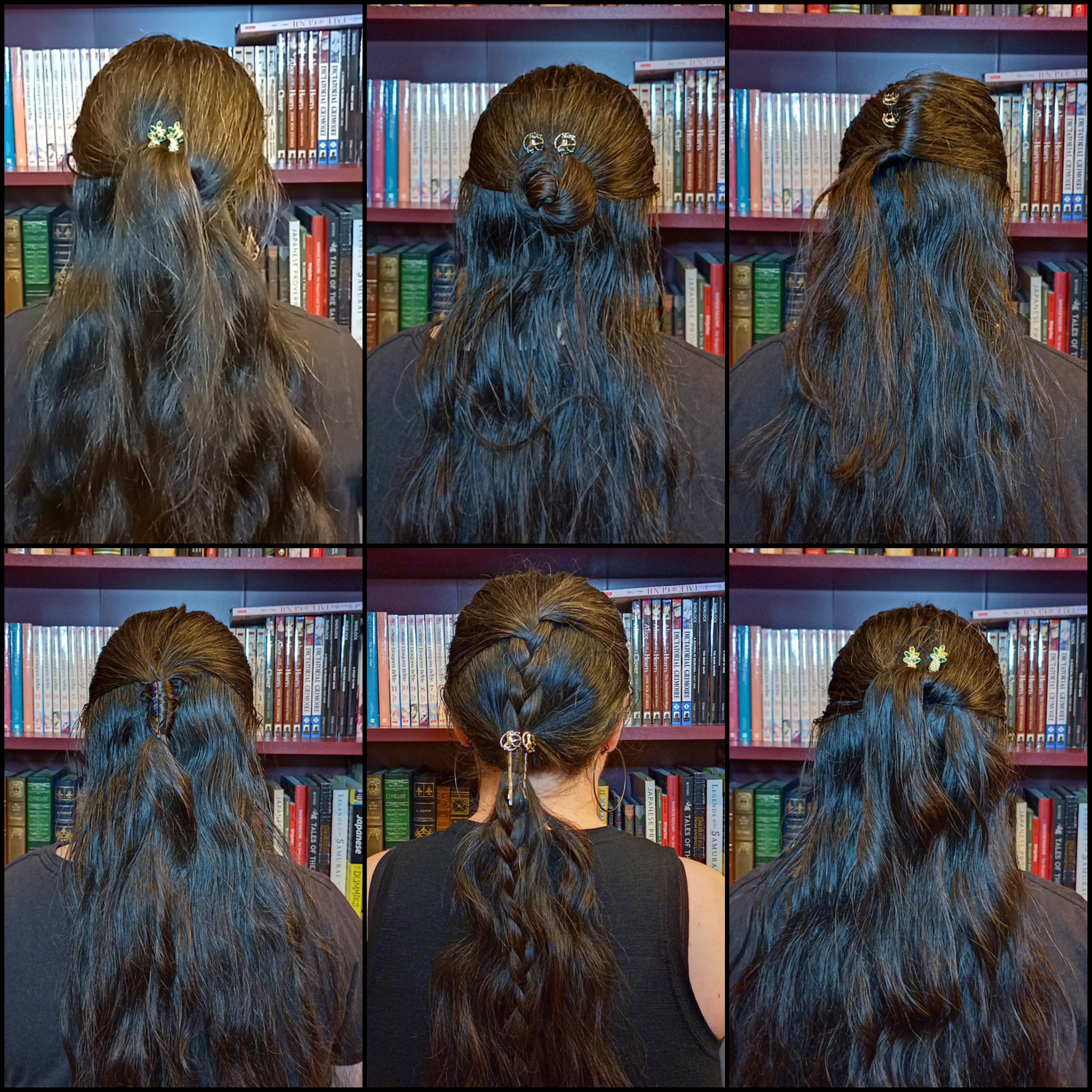 Here’s the thing: traditionally, bobby pins are meant to be used with the wavy side down against your head, and the flat side facing up. The waves are meant to help grip your head. I don’t dispute that, however the bobby pins I use have these cute decorations on them and have to be put in flat side down. I haven’t had any issues with them, though, and they’re very strong, so they stay put just fine. Wavy side down is a good guideline when applicable, but not imperative to success.